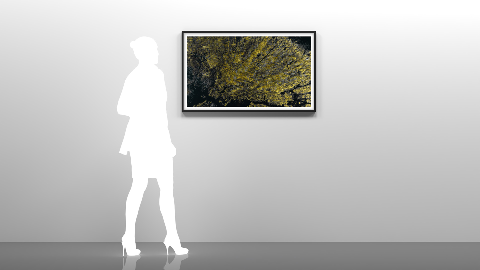 Na granicy percepcji, w sferze widzenia peryferyjnego, ostatnim kolorem, jaki nasze oczy są w stanie uchwycić, jest żółty – a wśród jego odcieni szczególne miejsce zajmuje cytrynian, chłodna żółć z nutą zieleni. Jako ostatni, intensywny akord kolorystyczny, wysuwa się na pierwszy plan spokojnej strefy achromatycznych barw. Jeśli jednak skierujemy wzrok ku środkowi obrazu i skonfrontujemy cytrynian z szarością, rozpoczyna się subtelny dialog. Pozornie neutralna szarość wydobywa pełnię żółci i wzmacnia jej ton, jednocześnie nabierając delikatnego fioletowego odcienia – nawiązując do zjawiska znanego jako kontrast równoczesny. Wzajemne oddziaływanie jest równie wyraźne w wymiarze światła: cytrynian, otoczony szarością, wydaje się jeszcze jaśniejszy i bardziej świetlisty, podczas gdy szarość staje się głębsza, cięższa i gęstsza. Ta subtelna i ulotna zmiana tonacji sprawia, że kompozycja sprawia wrażenie wdychania światła i wydychania cienia. To zestawienie można porównać do rozmowy dwóch przyjaciół – jeden mówi z pasją, a drugi sprawia, że każde słowo wydaje się jeszcze ważniejsze.