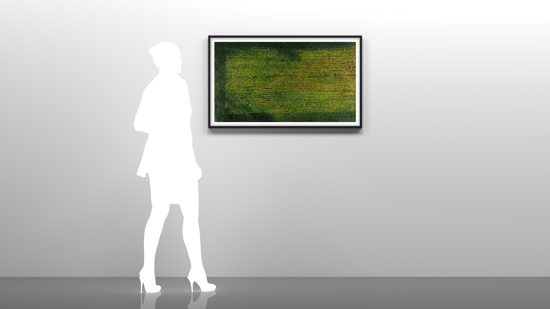 Zieleń – najbardziej naturalny z kolorów – jest niczym oddech natury w najczystszej postaci. Kojarzy się z młodością, witalnością i spokojem. To kolor, który koi zmysły, łagodzi napięcie, a czasem wręcz wywołuje stan marzycielskiej kontemplacji. Jest tak bliski ludziom, że często pozostaje niezauważony i zlewa się z codziennością. W swojej czystej postaci zieleń nigdy nie istnieje sama w naszym postrzeganiu. Towarzyszy jej powidok – subtelna magenta, która pojawia się, gdy przenosimy wzrok z zielonej powierzchni na jasną. W obrazie, w którym zieleń jest gładka i równomierna, magenta pojawia się wyraźniej. Jednak gdy towarzyszy jej faktura, powidoek staje się bardziej rozproszony i delikatny, niemal jak wspomnienie koloru. W tej kompozycji zieleń staje się azylem dla spojrzenia i tłem dla myśli. To kolor, który przynosi spokój, reguluje wewnętrzny rytm i pozwala nam nabrać sił po zgiełku dnia codziennego.